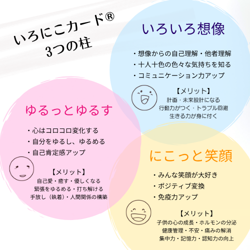 小さいお子さんや感情表現が苦手な方でも、出来上がったいろにこカードを見ながら話すことで、